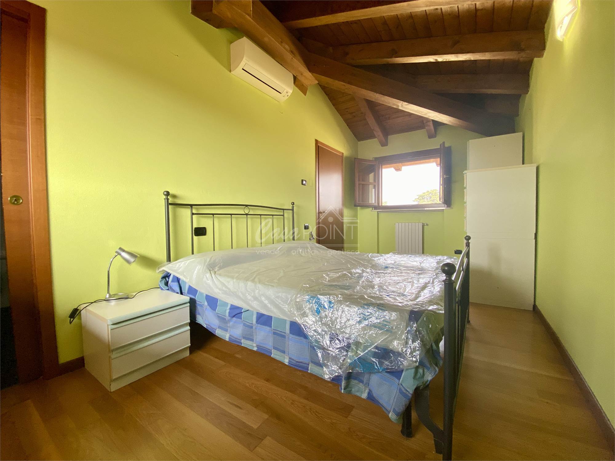 L’immobile si distingue per le travi a vista, la pavimentazione in parquet, aria condizionata, zanzariere e infissi in legno con doppi vetri.