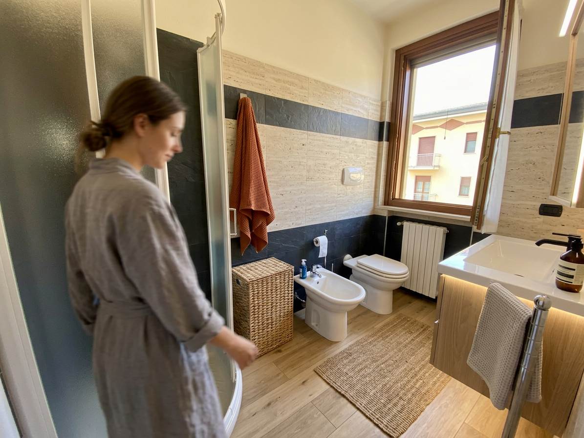 - bagno con doccia con spazio per lavatrice e asciugatrice